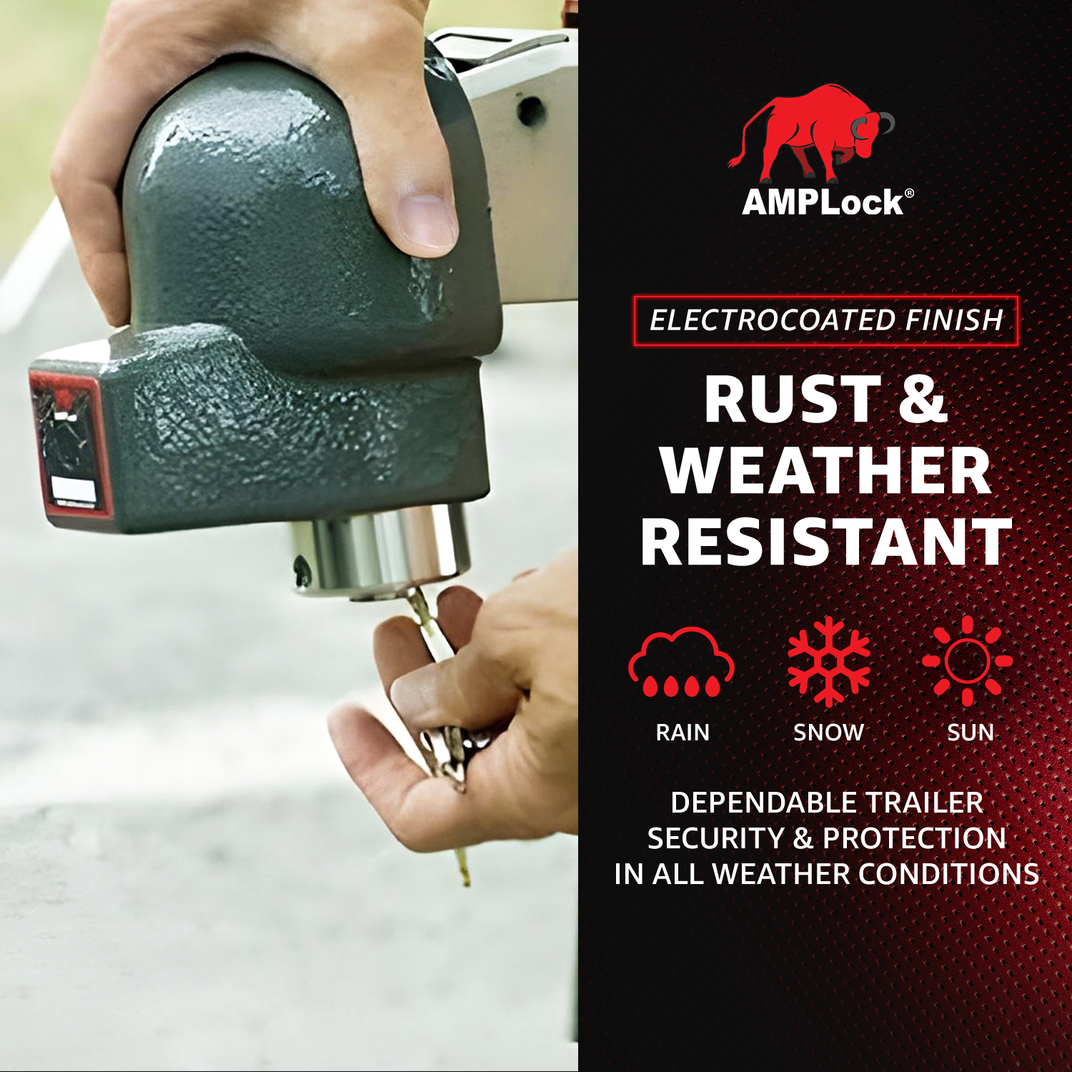 The AMPLock Ball Coupler Lock – No Lip Design combines security, durability, and ease of use. Its custom-molded fit ensures a perfect connection with no-lip couplers, while its heavy-duty construction protects against rust and theft attempts. The push & lock system allows for quick and efficient locking, while the unique key system prevents unauthorized duplication. Proudly made in North America, this trailer lock provides maximum protection for your trailer or RV, ensuring total peace of mind.